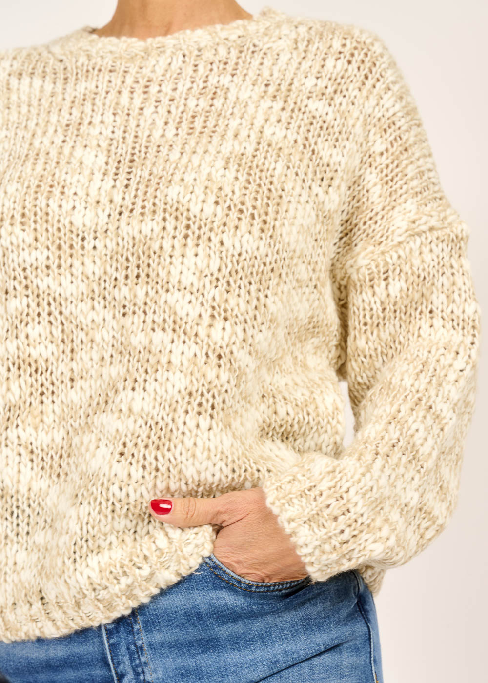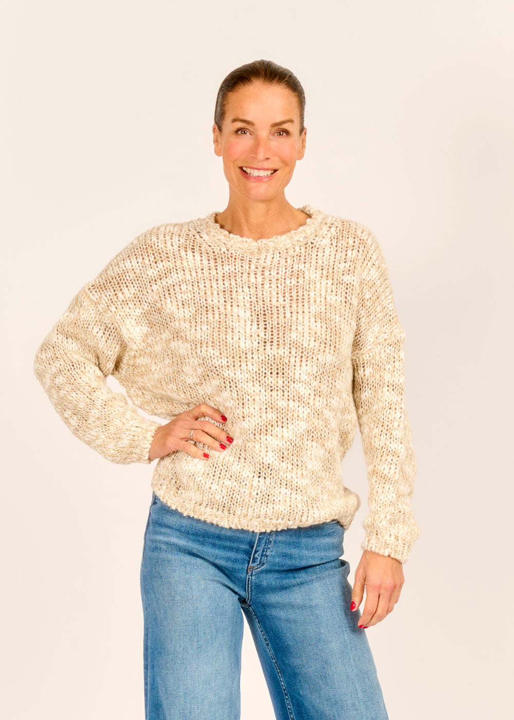 Setze ein stilvolles Statement mit unserem Mouline-Pullover in natürlicher Mélange-Optik. Die besondere Garnstruktur schafft eine aufregende, mehrfarbige Textur, die ihn zum Hingucker macht. Das lockere Strickmaterial und der lässige Schnitt sorgen für einen hohen Tragekomfort und machen ihn zum idealen Begleiter für jeden Tag.