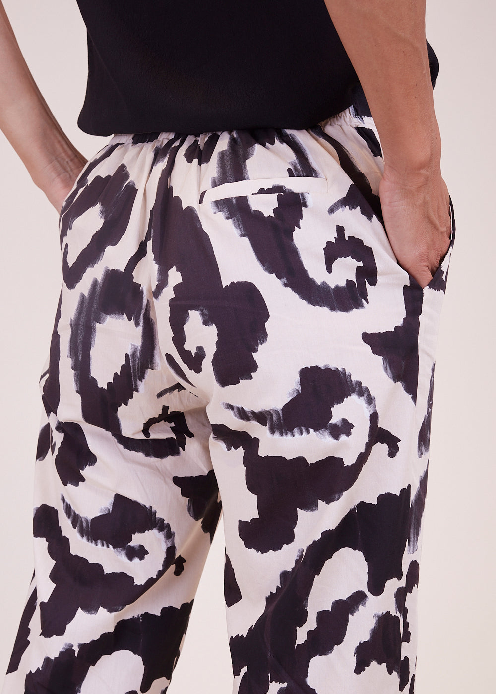 Schmale Sommerhose mit All-Over-Print. Die Hose hat eine 7/8-Länge und ist am Saumen umgekrempelt für einen raffinierten Look. Das Bündchen auf mittlerer Leibhöhe ist im Rücken mit einem Gummizug versehen für ein noch bequemeres Tragegefühl. Die Hose besitzt seitliche Eingriffstaschen.