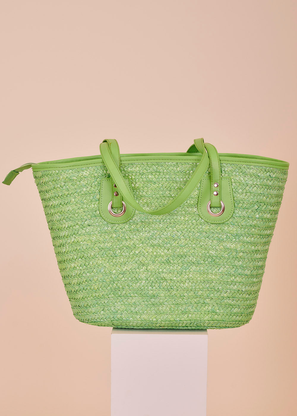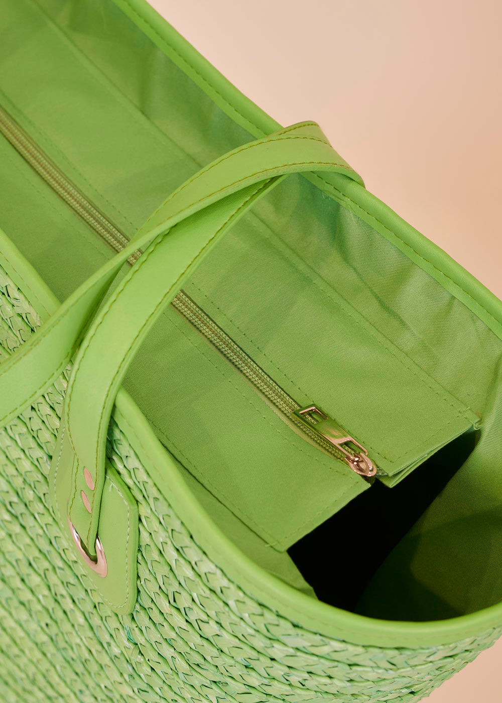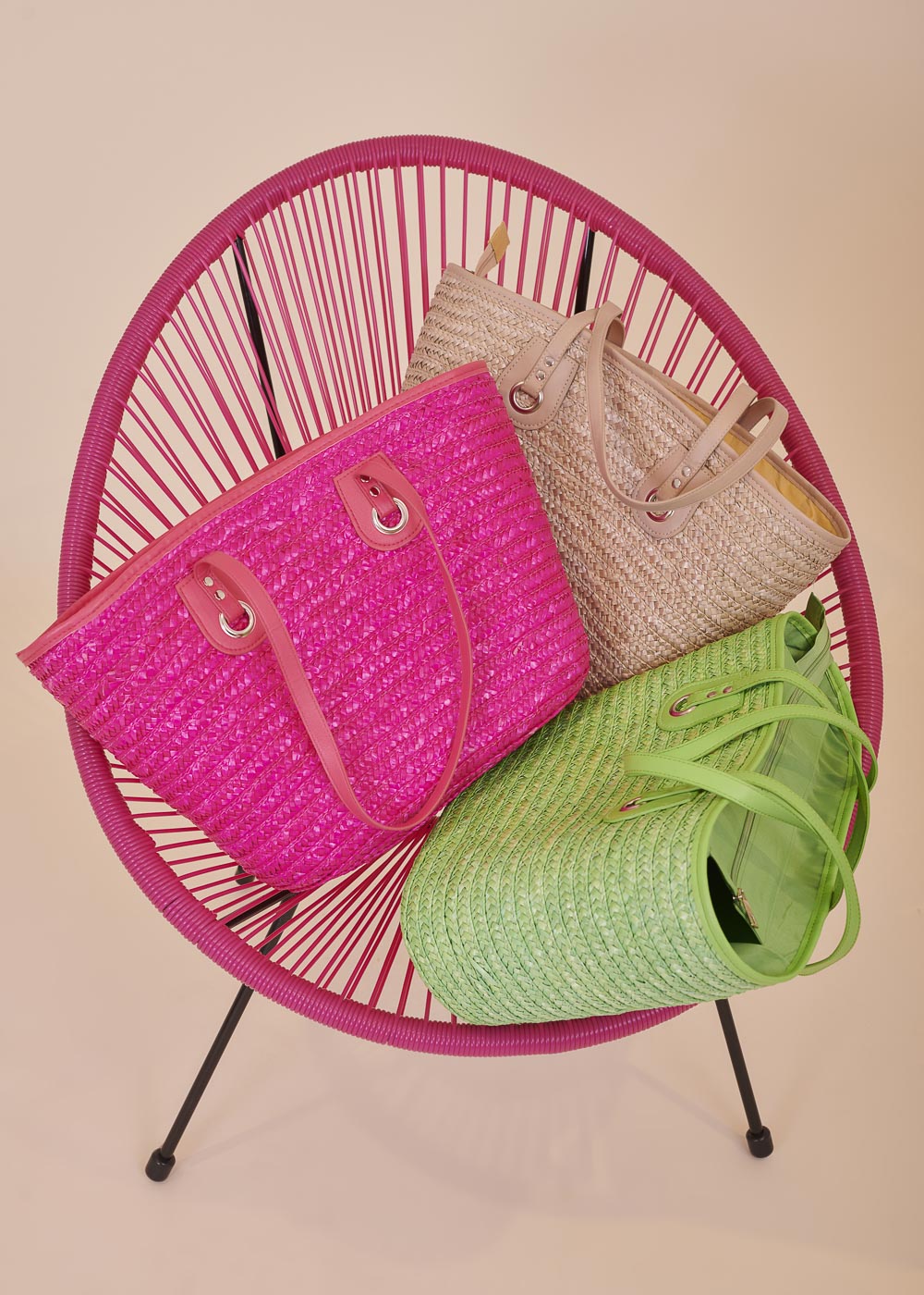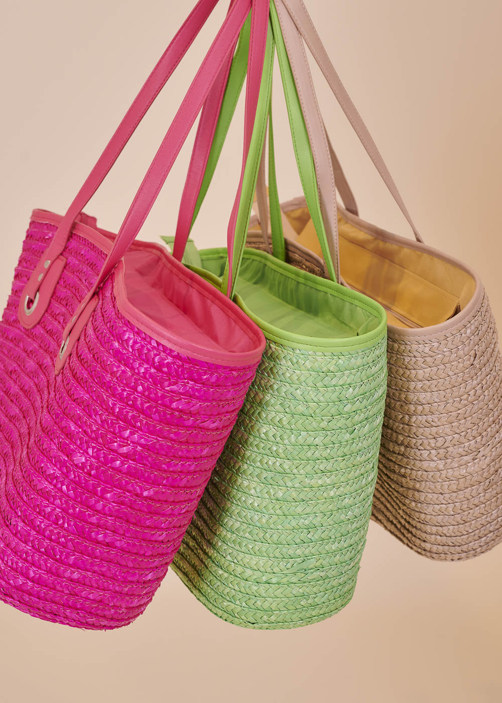 Shopper aus geflochtenem Papierstroh in Häkeloptik. Die langen Tragegriffe machen es möglich, dass man die Tasche in der Hand oder über der Schulter tragen kann. In den neuen Trendfarben. Ein Must-Have der Saison und perfekt für deine nächste City Tour.