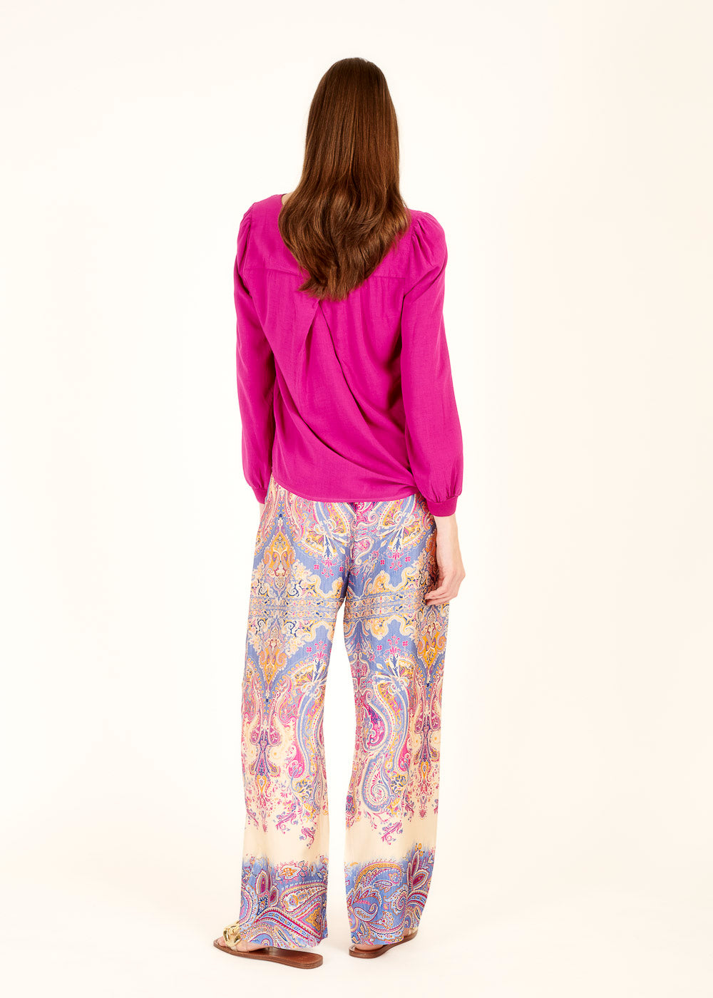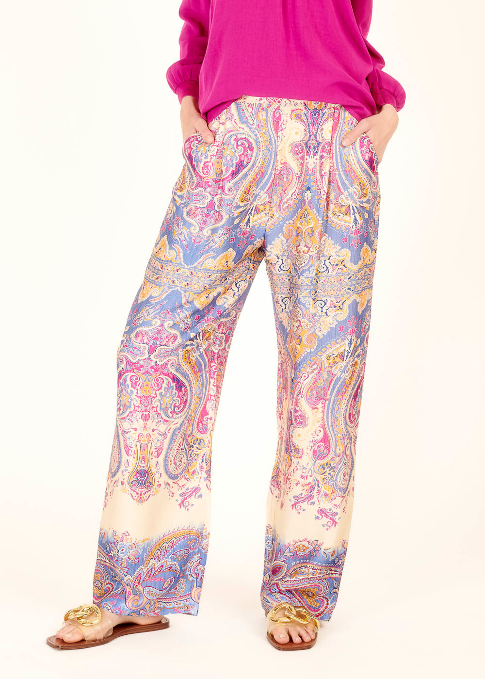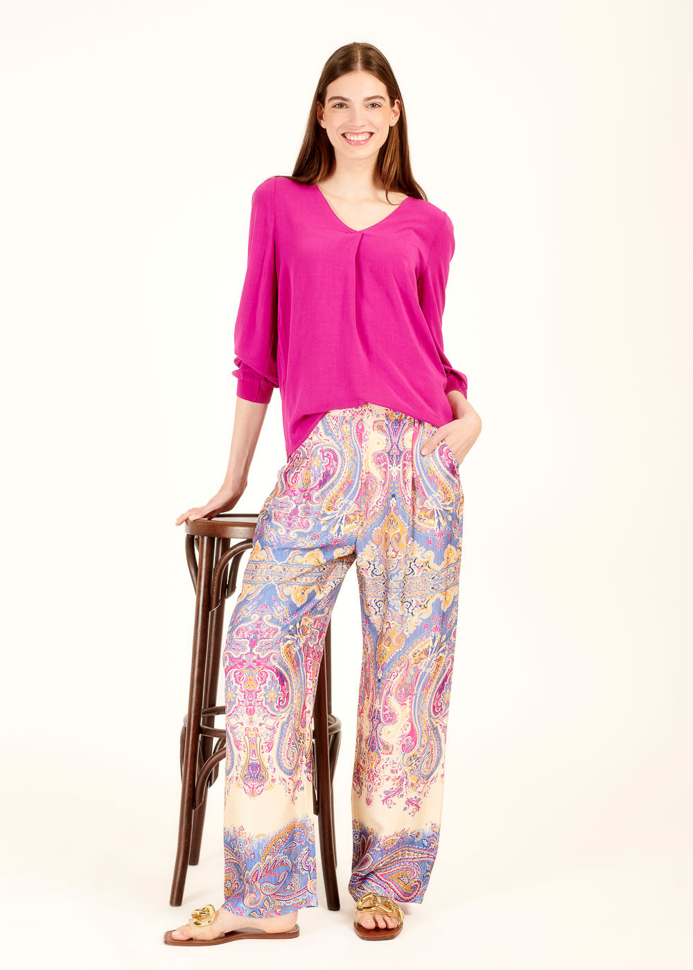 Unsere bedruckte Hose aus Viskose vereint Komfort und Stil und ist die perfekte Wahl für einen trendigen und bequemen Look.