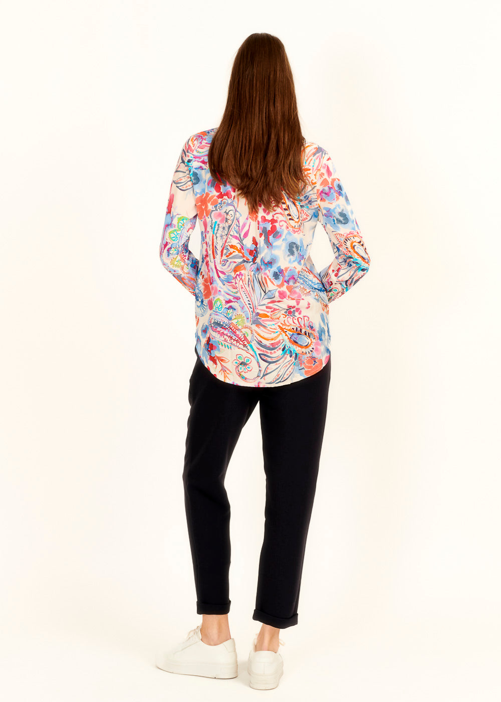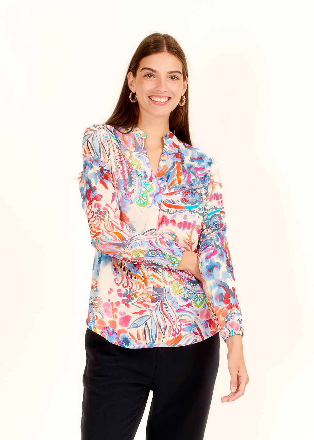 Diese bedruckte Tunikabluse in zartem Celeste verleiht deinem Look eine stilvolle Leichtigkeit. Perfekt für jeden Anlass, kombiniert sie Komfort mit Eleganz.